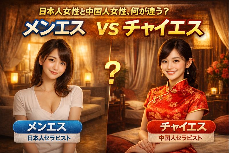 この記事では、メンエス(メンズエステ)とチャイエス(チャイニーズエステ)の違いを、